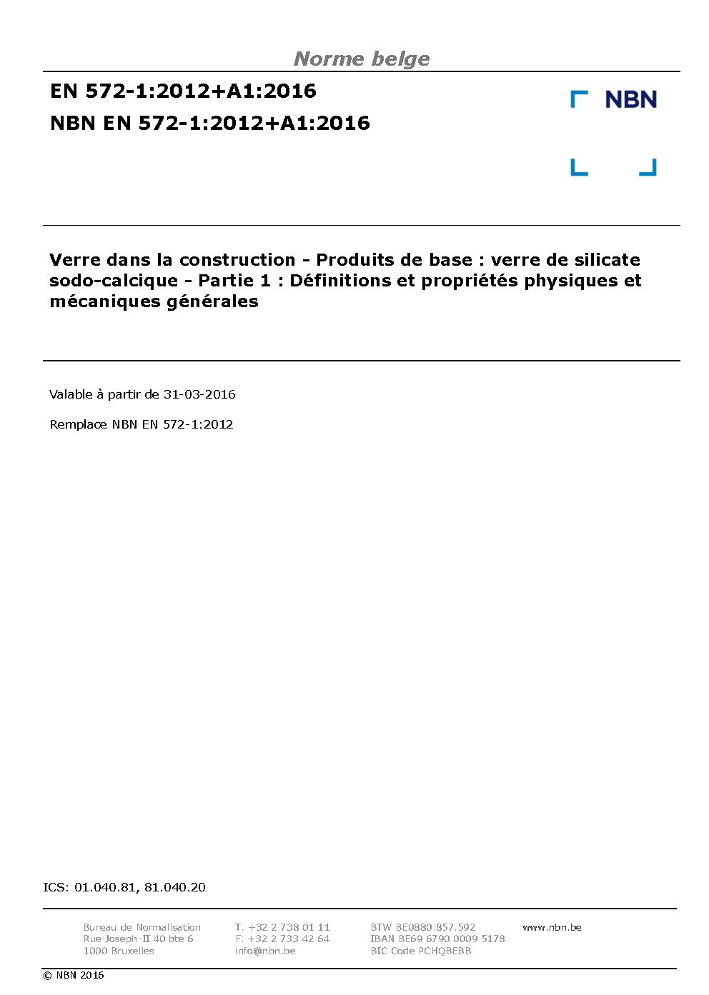 NBN EN 572-1:2012+A1:2016