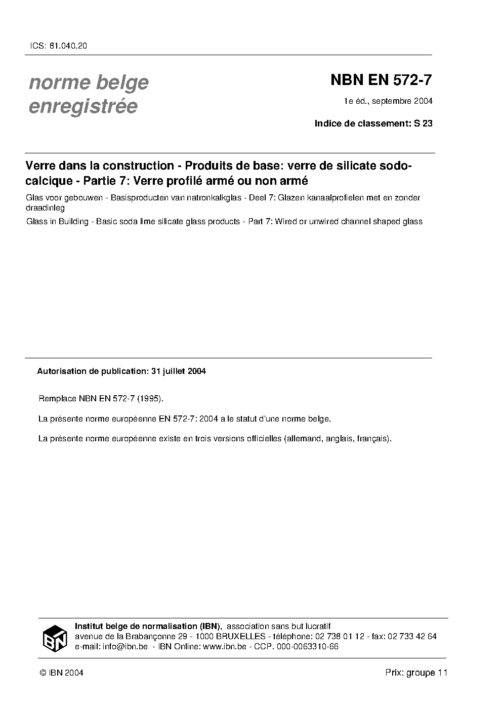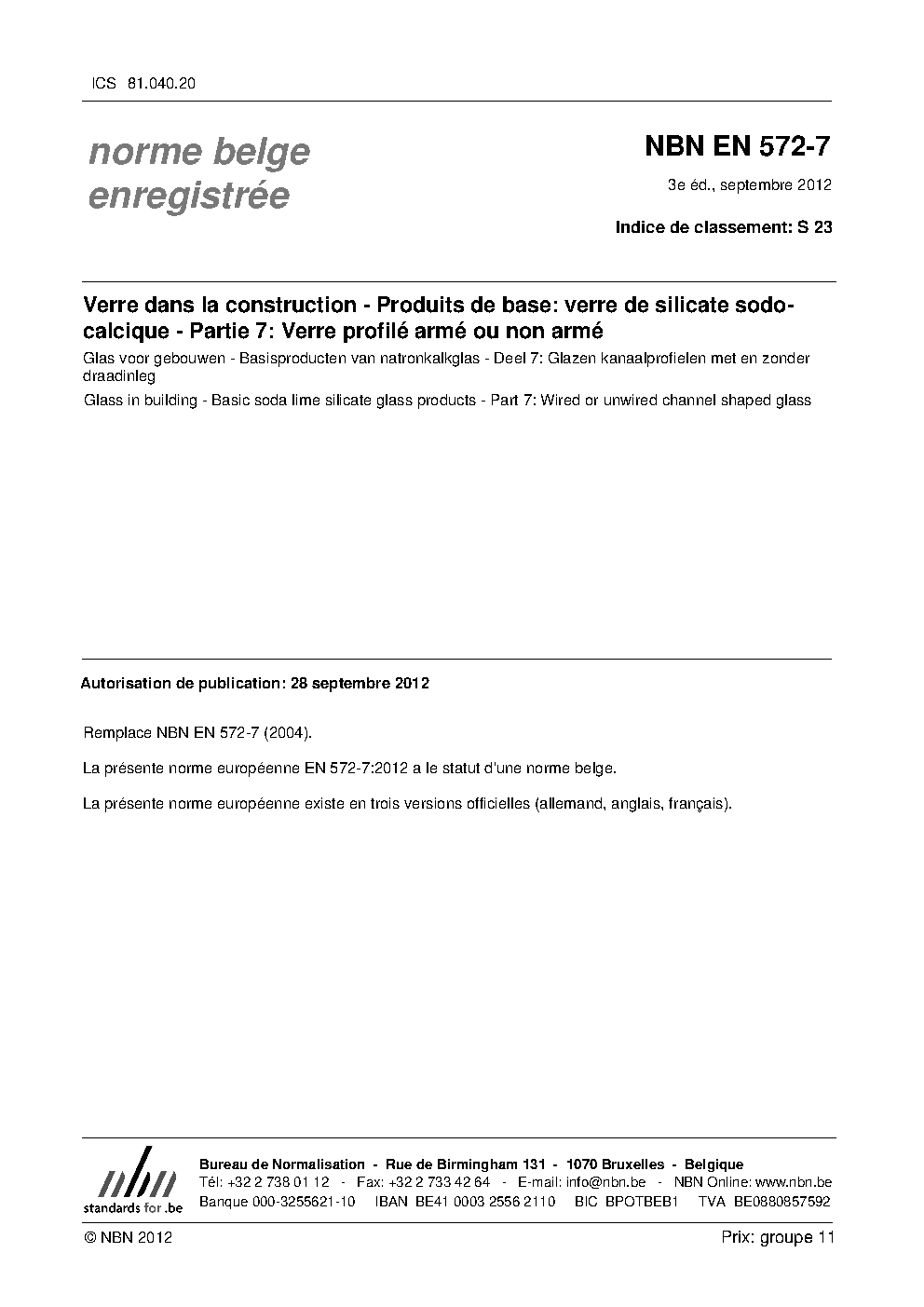 | Publisher | Bureau de Normalisation Belge (NBN) |