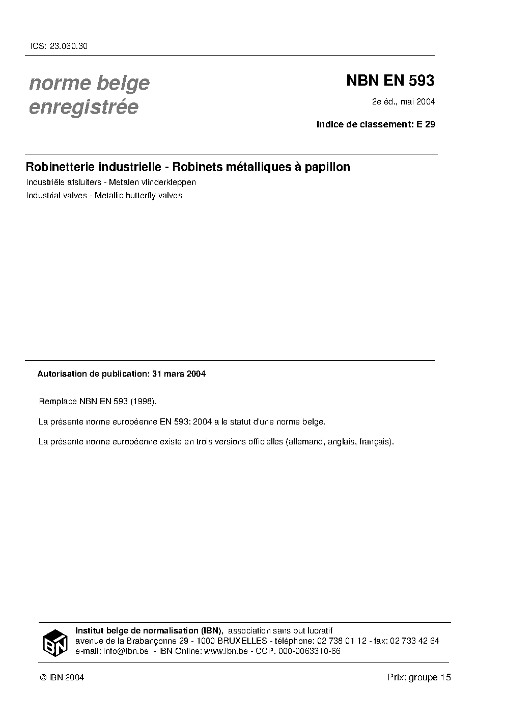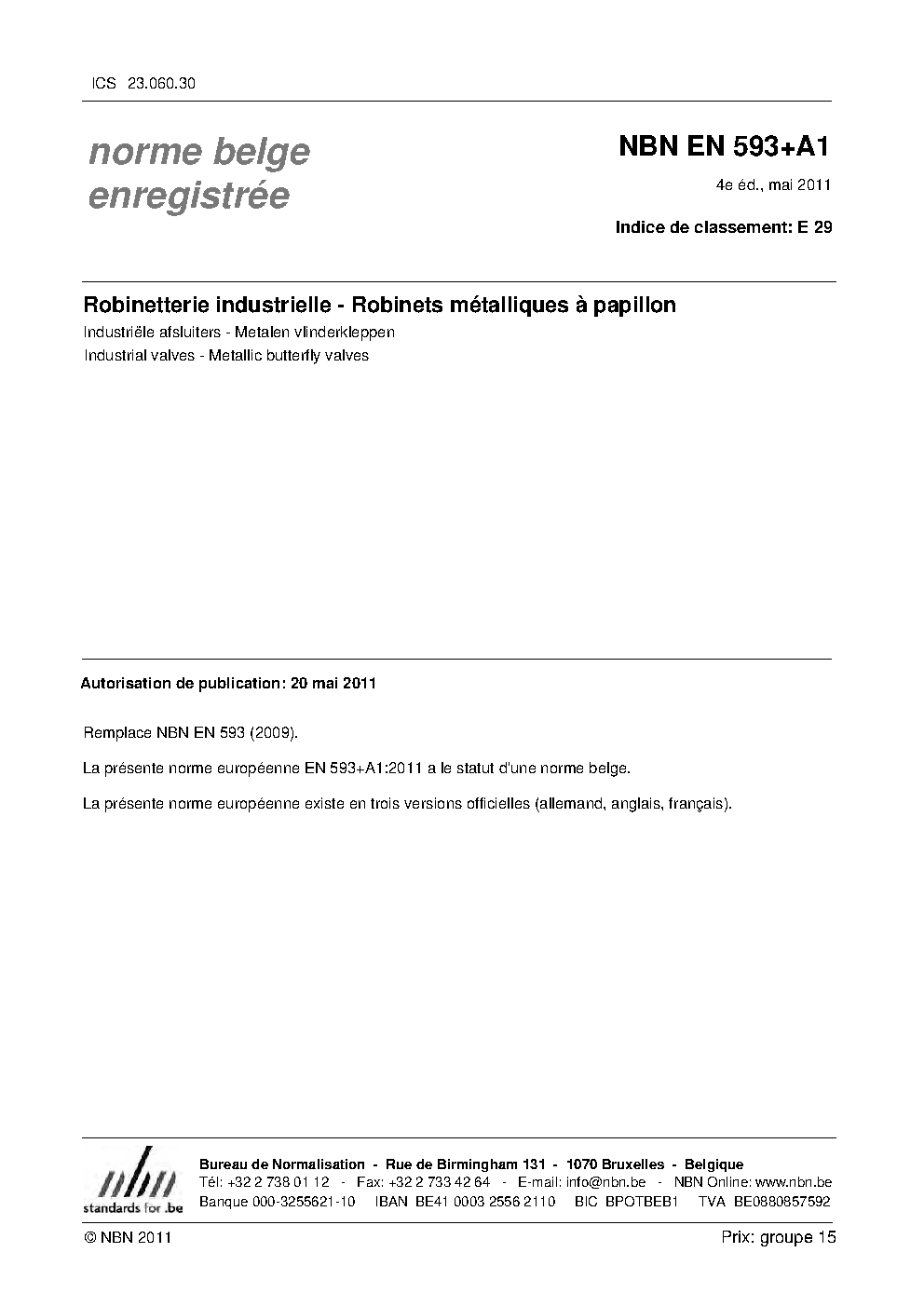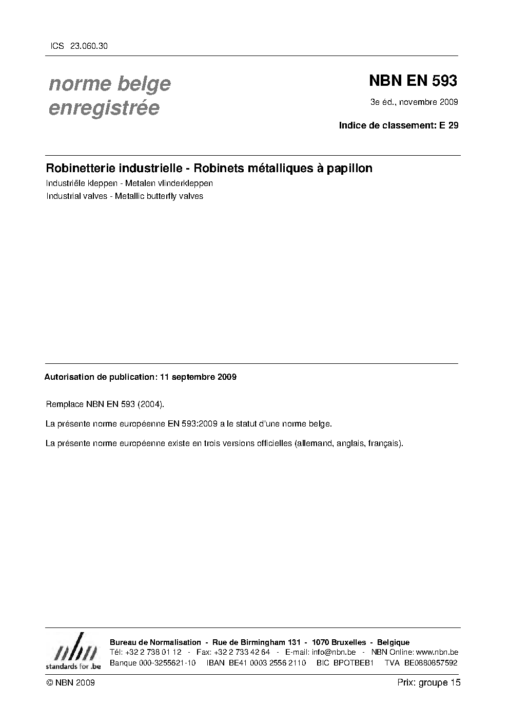 | Publisher | Bureau de Normalisation Belge (NBN) |