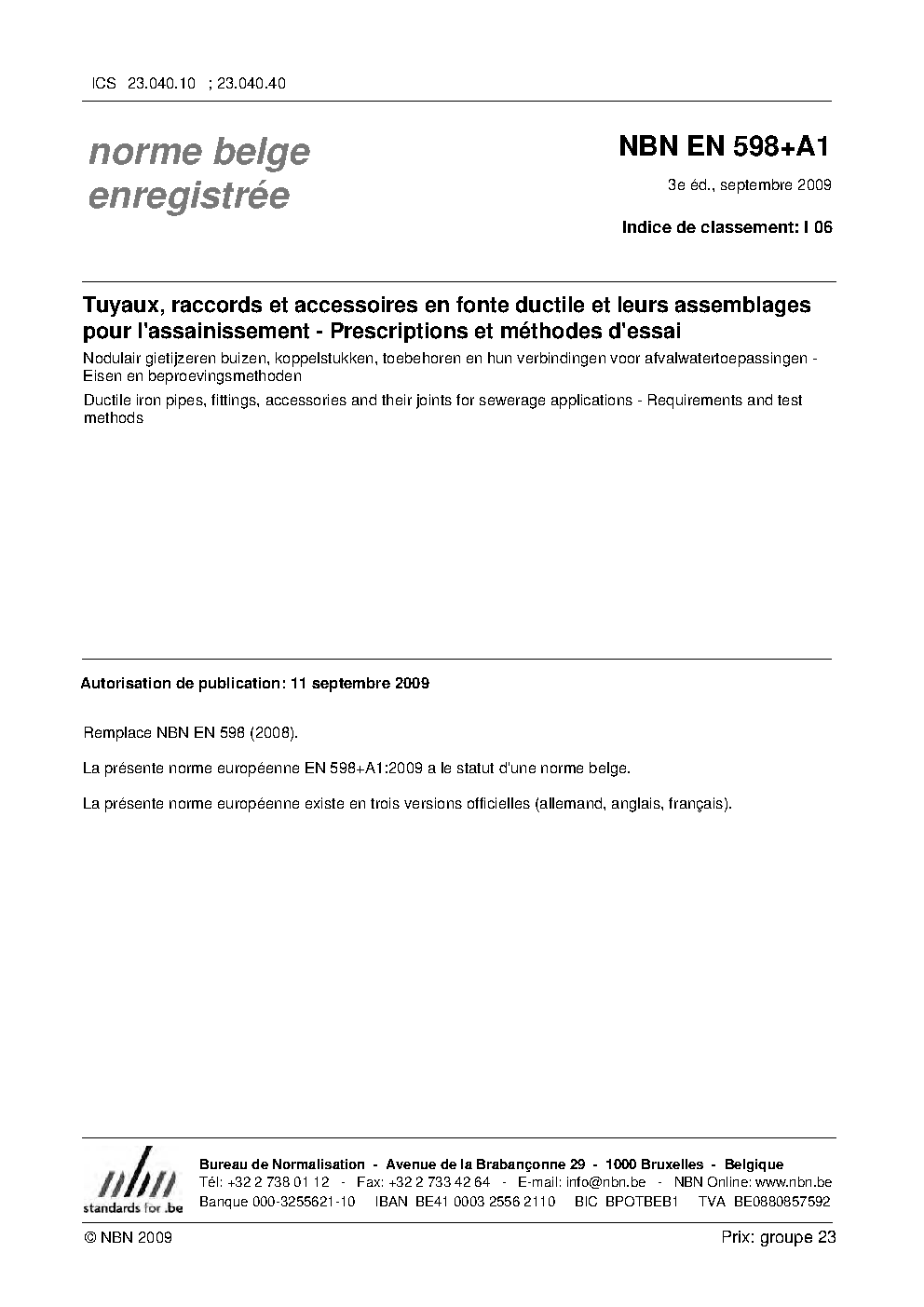 NBN EN 598+A1:2009