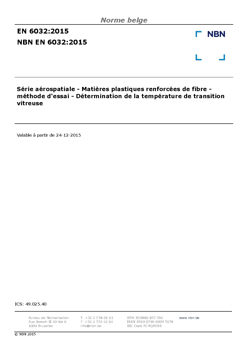 | Publisher | Bureau de Normalisation Belge (NBN) |