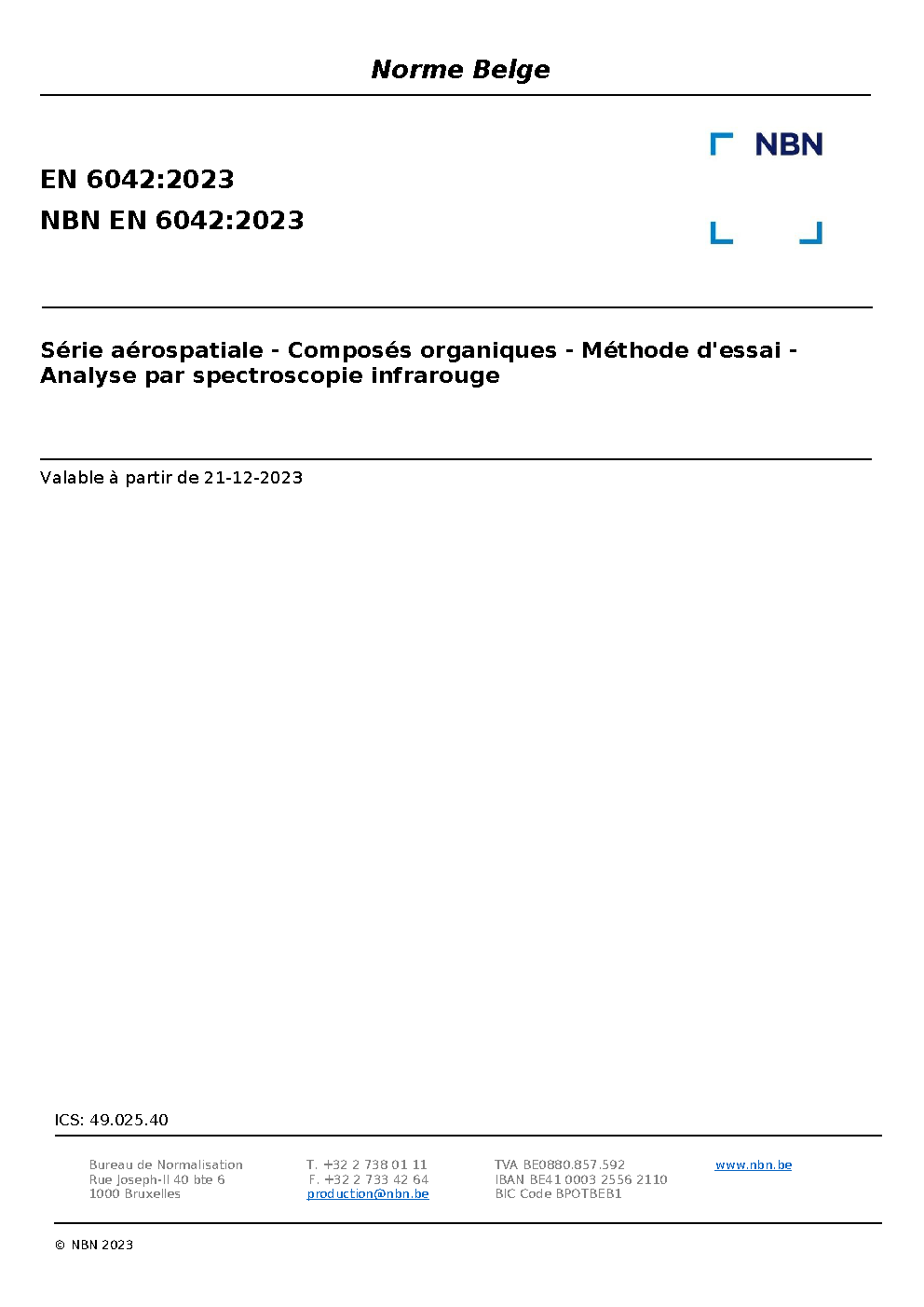 | Publisher | Bureau de Normalisation Belge (NBN) |
