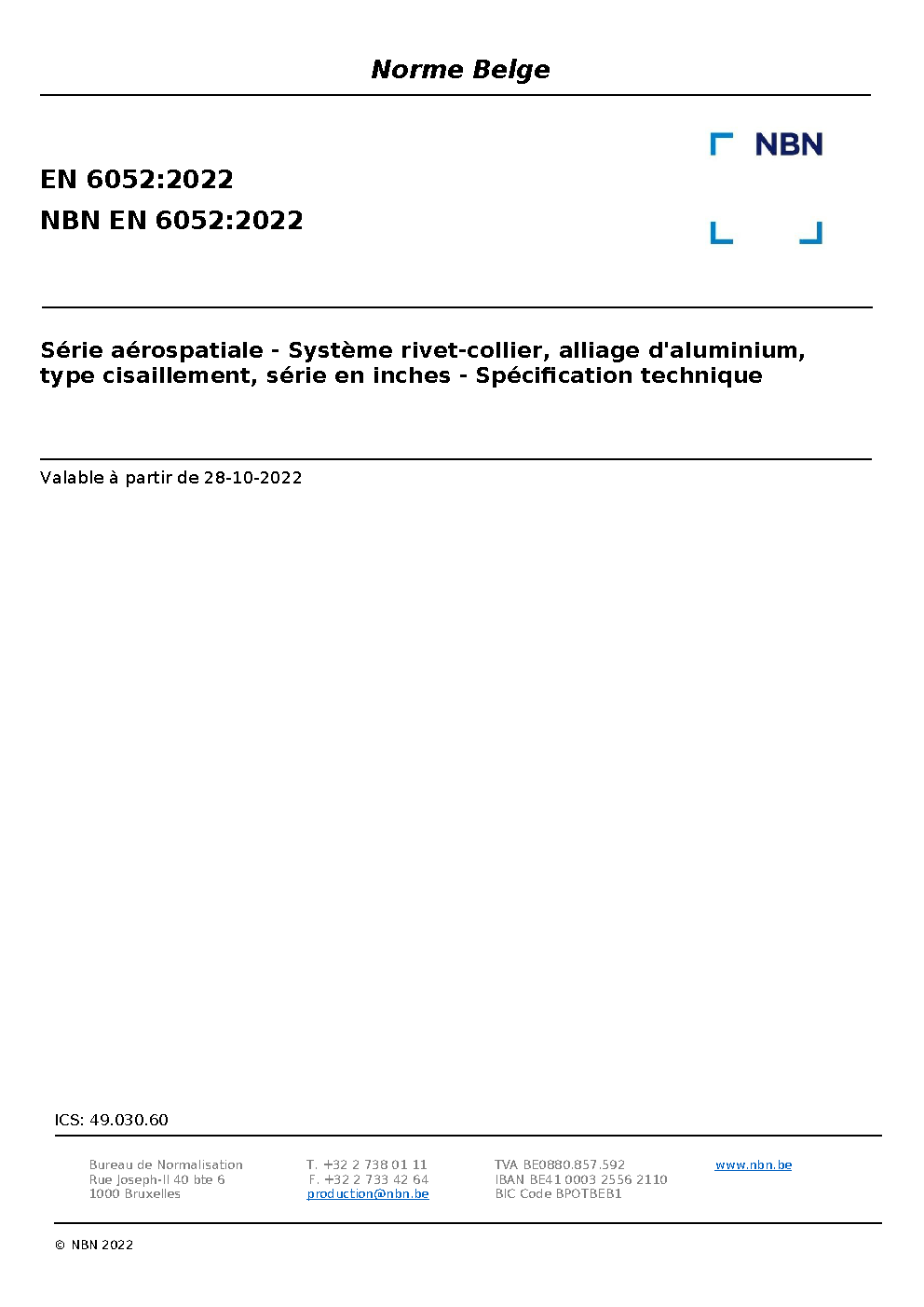 | Publisher | Bureau de Normalisation Belge (NBN) |