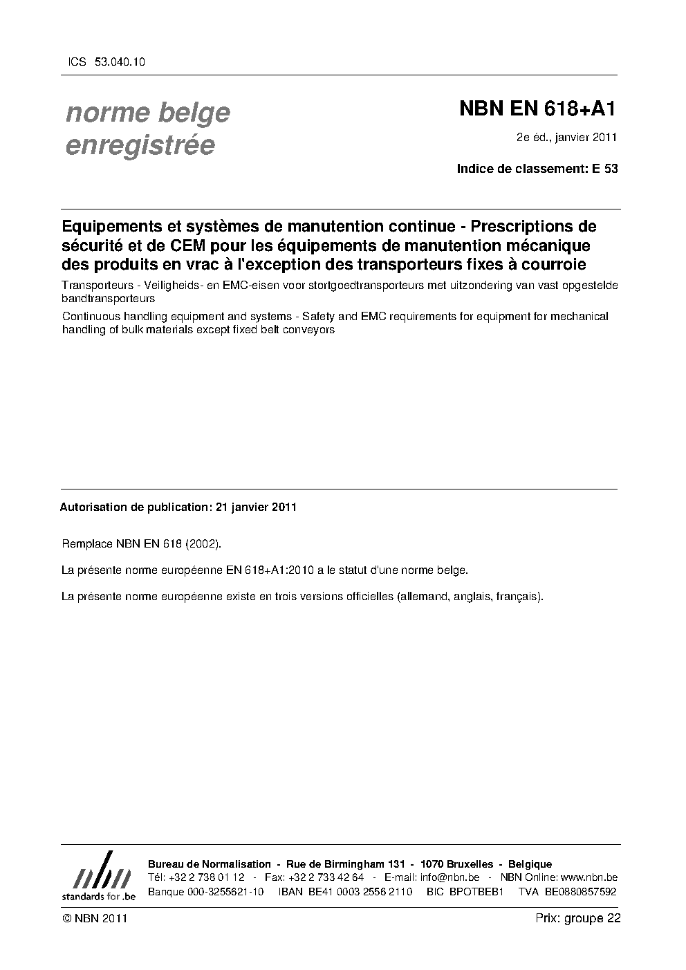| Publisher | Bureau de Normalisation Belge (NBN) |