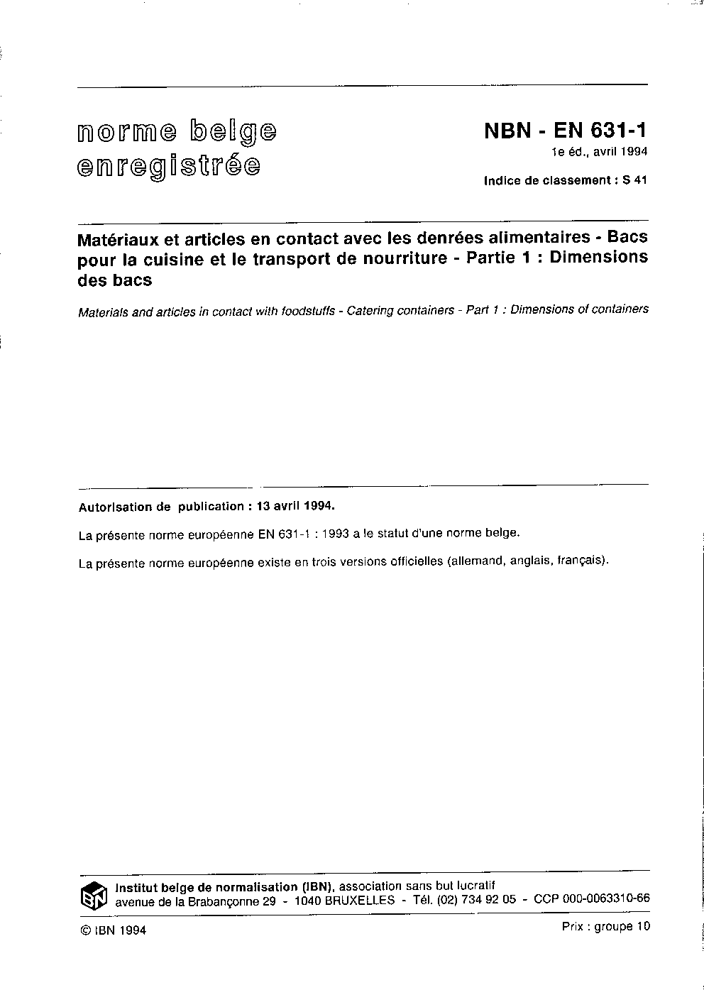 | Publisher | Bureau de Normalisation Belge (NBN) |