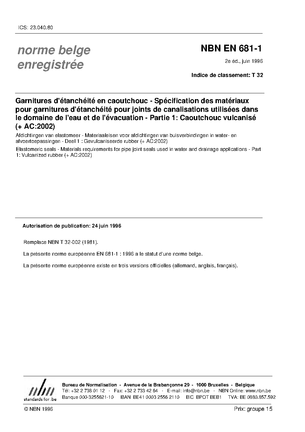 | Publisher | Bureau de Normalisation Belge (NBN) |