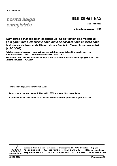 NBN EN 681-1/A2:2002