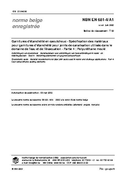 Elastomeric seals - Material requirements for pipe joint seals used in water and drainage applications - Part 4: Cast polyurethane sealing elements