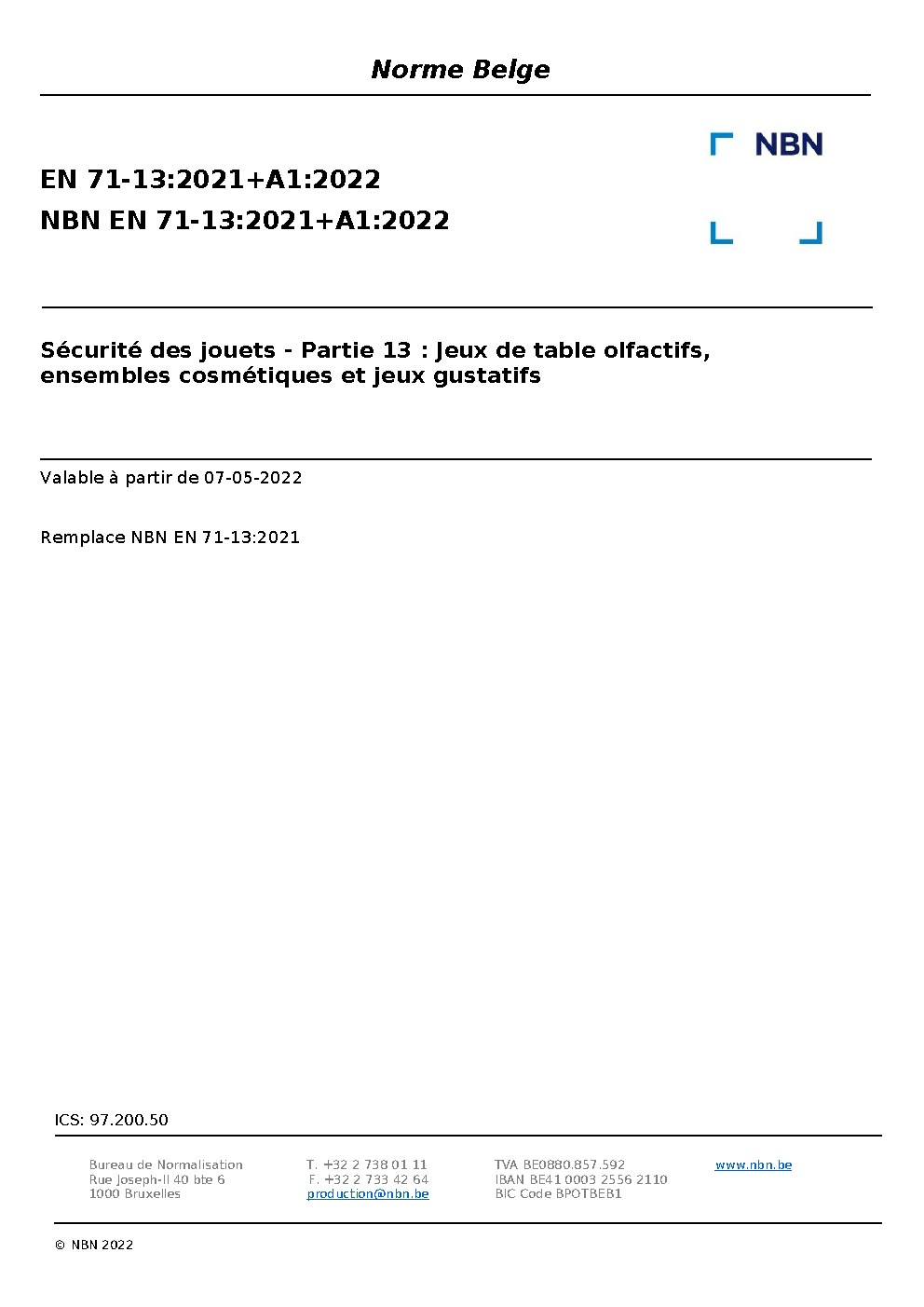 | Publisher | Bureau de Normalisation Belge (NBN) |