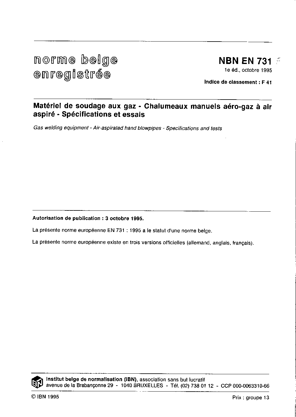 | Publisher | Bureau de Normalisation Belge (NBN) |