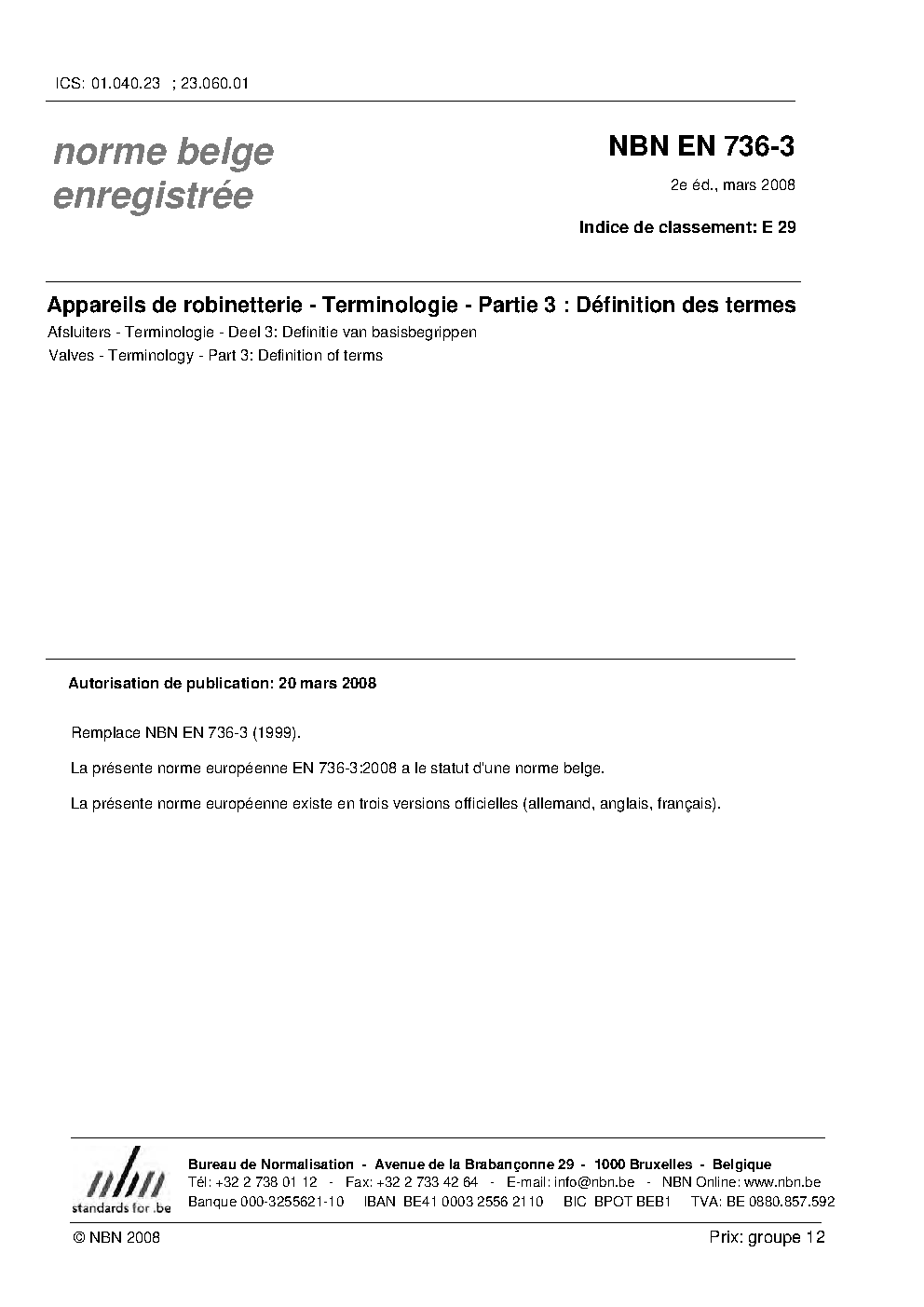 | Publisher | Bureau de Normalisation Belge (NBN) |