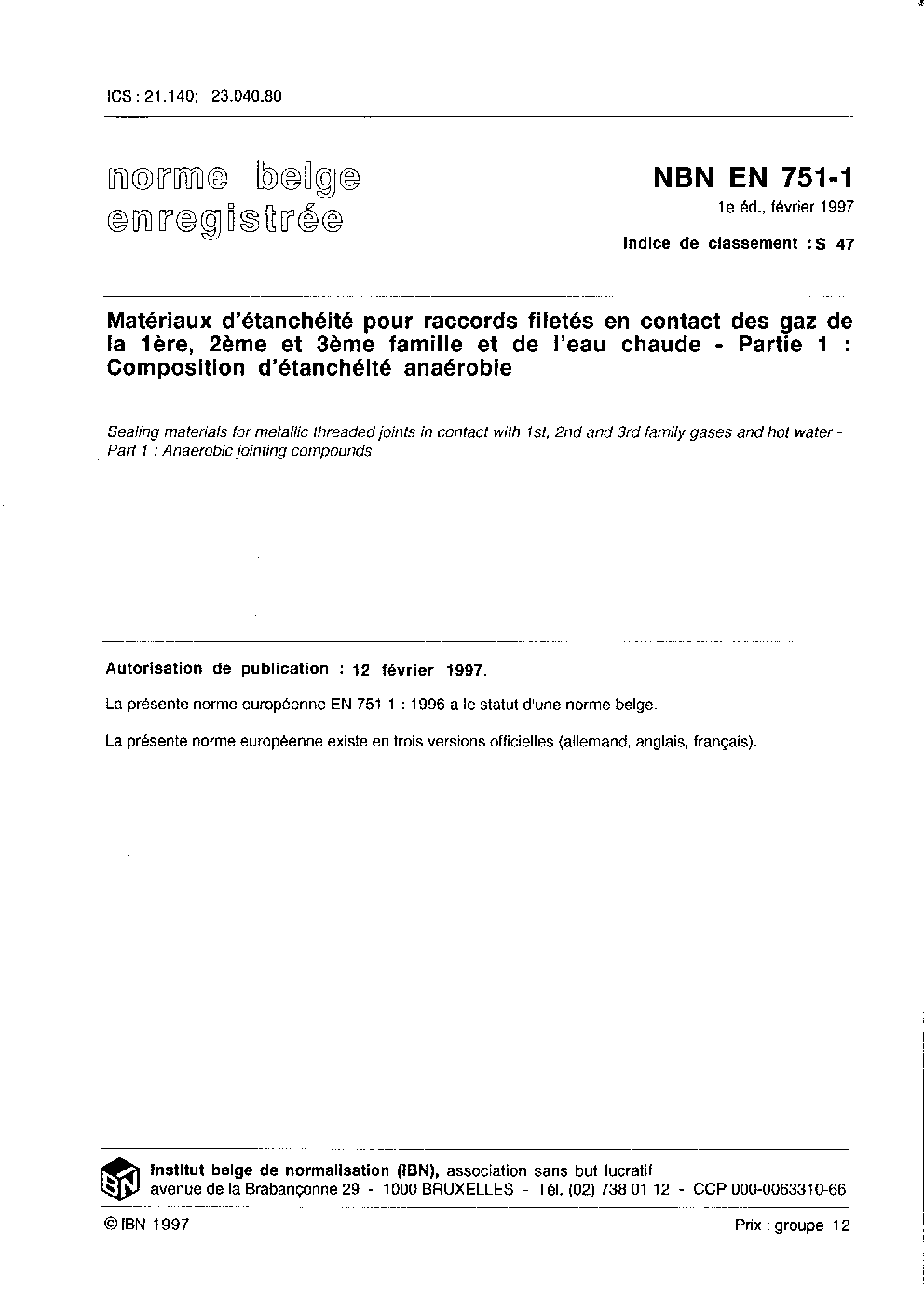 | Publisher | Bureau de Normalisation Belge (NBN) |