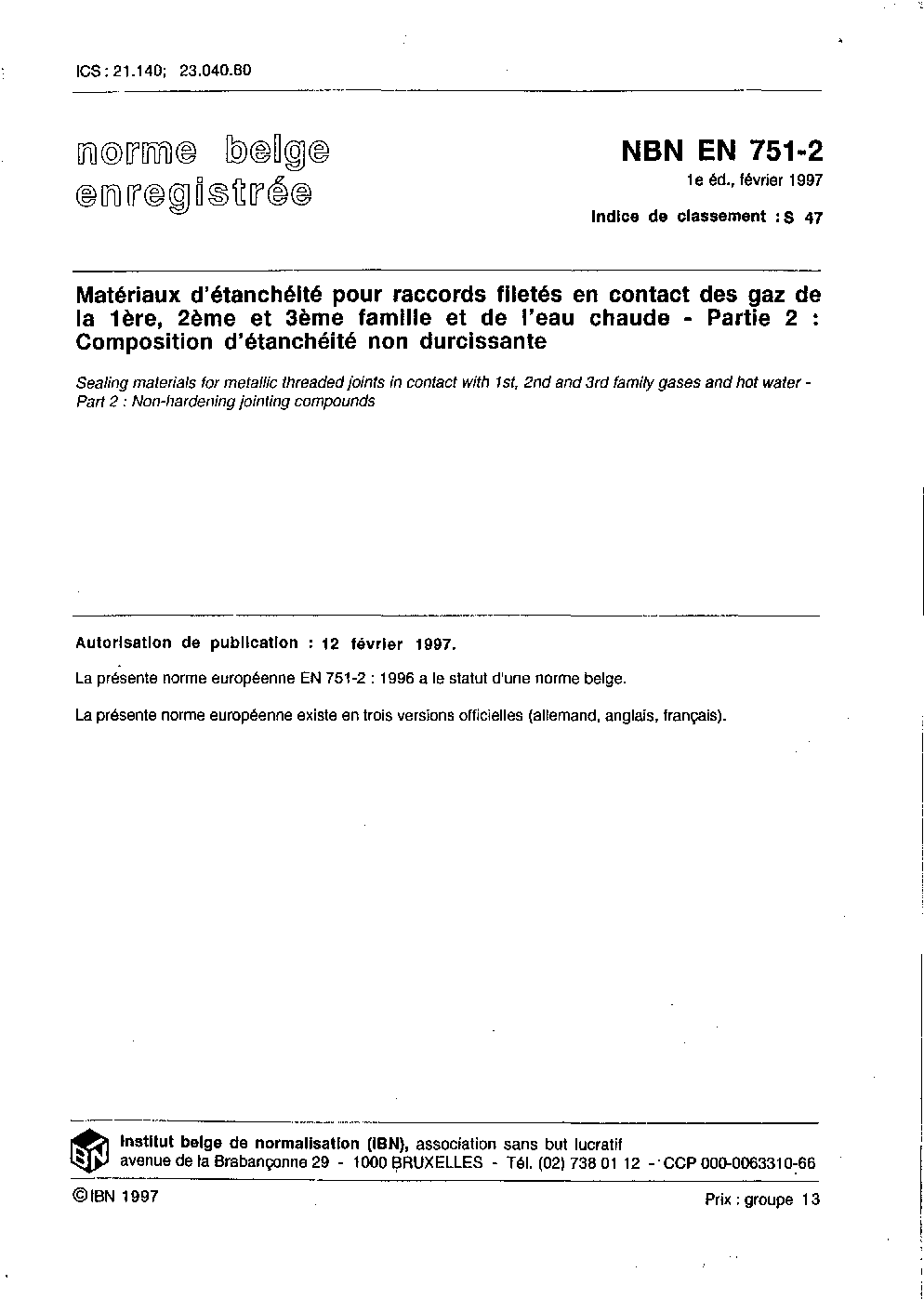 | Publisher | Bureau de Normalisation Belge (NBN) |