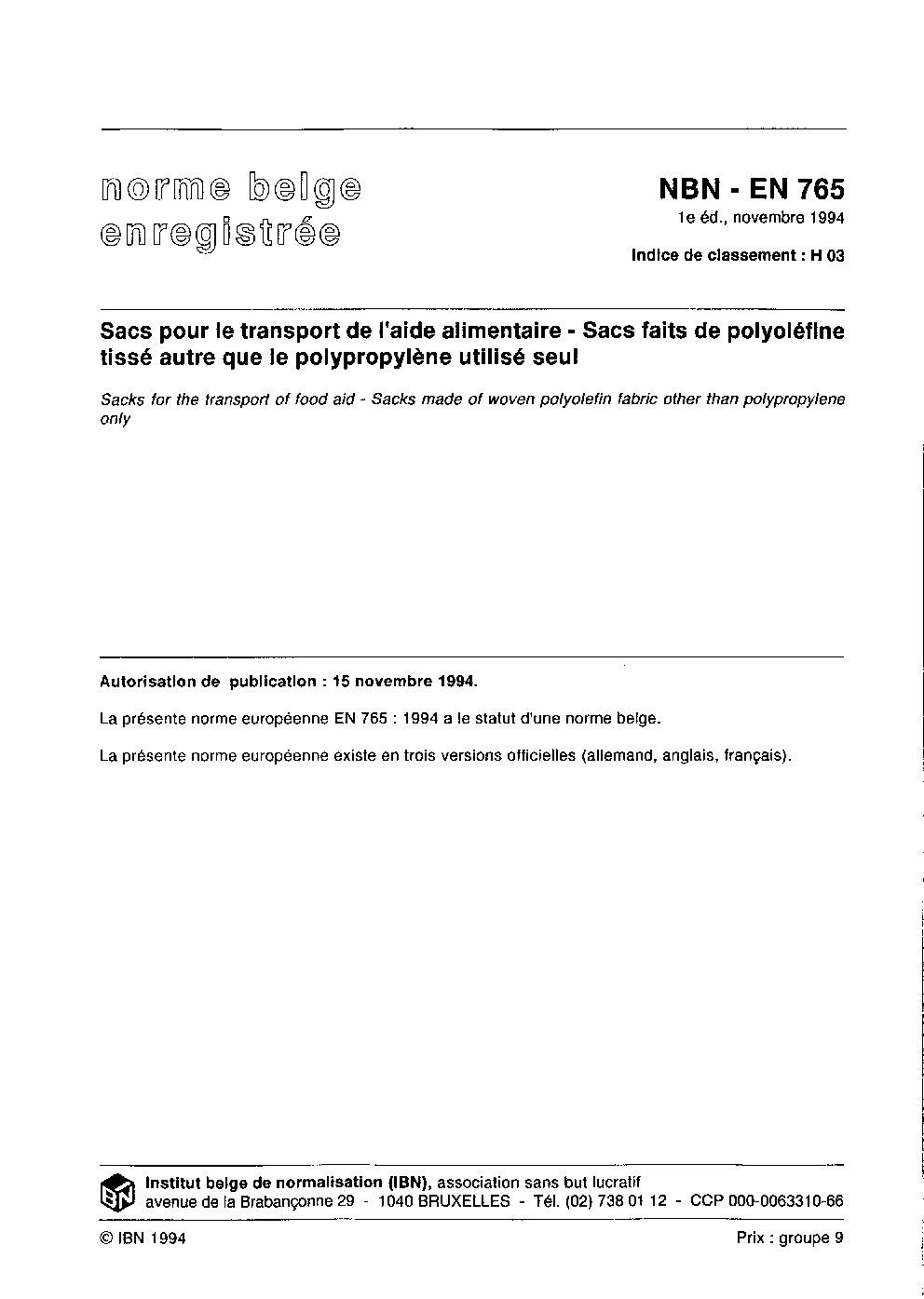 | Publisher | Bureau de Normalisation Belge (NBN) |