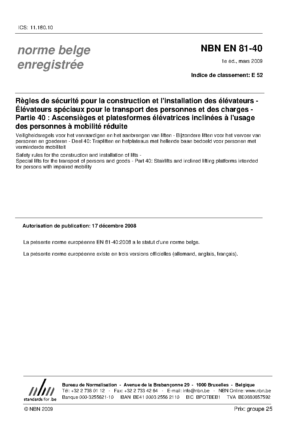 | Publisher | Bureau de Normalisation Belge (NBN) |