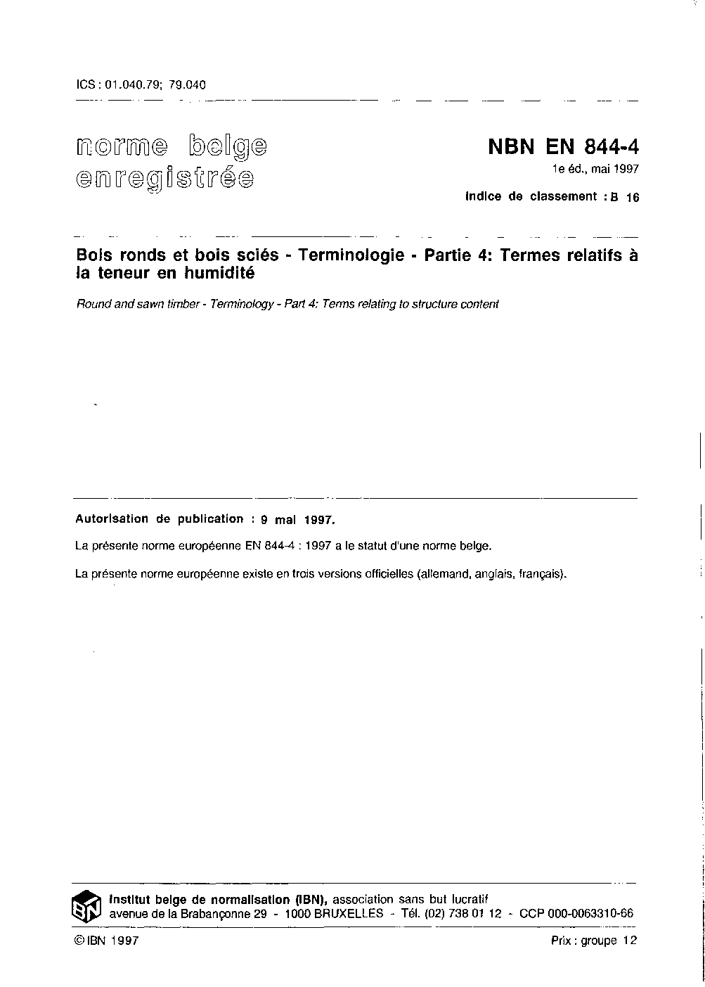 | Publisher | Bureau de Normalisation Belge (NBN) |