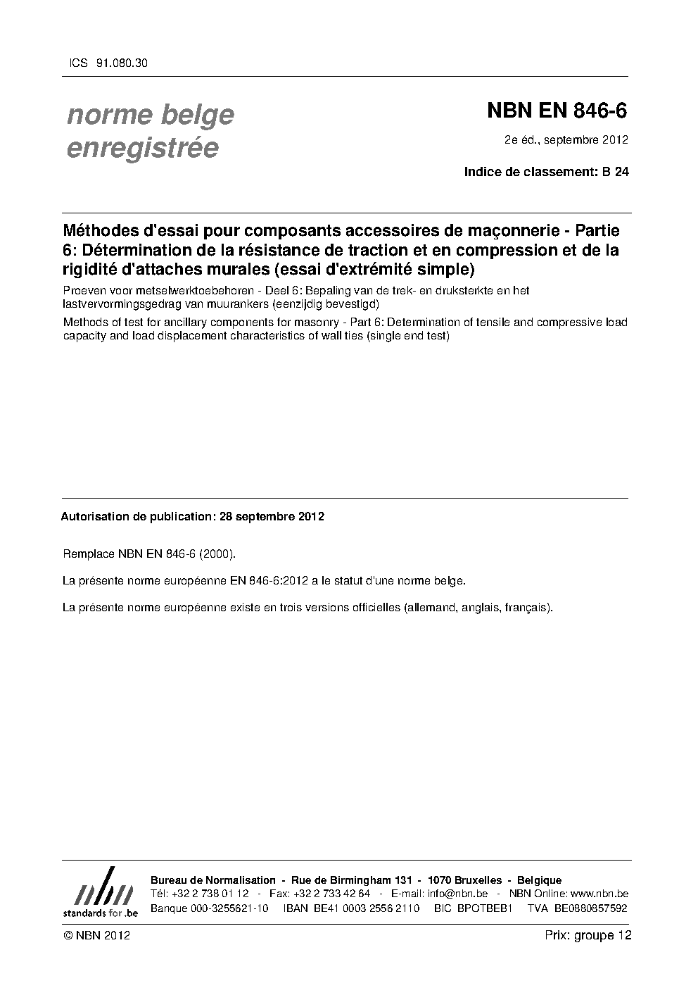 | Publisher | Bureau de Normalisation Belge (NBN) |