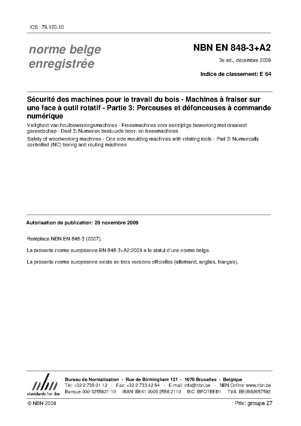 | Publisher | Bureau de Normalisation Belge (NBN) |