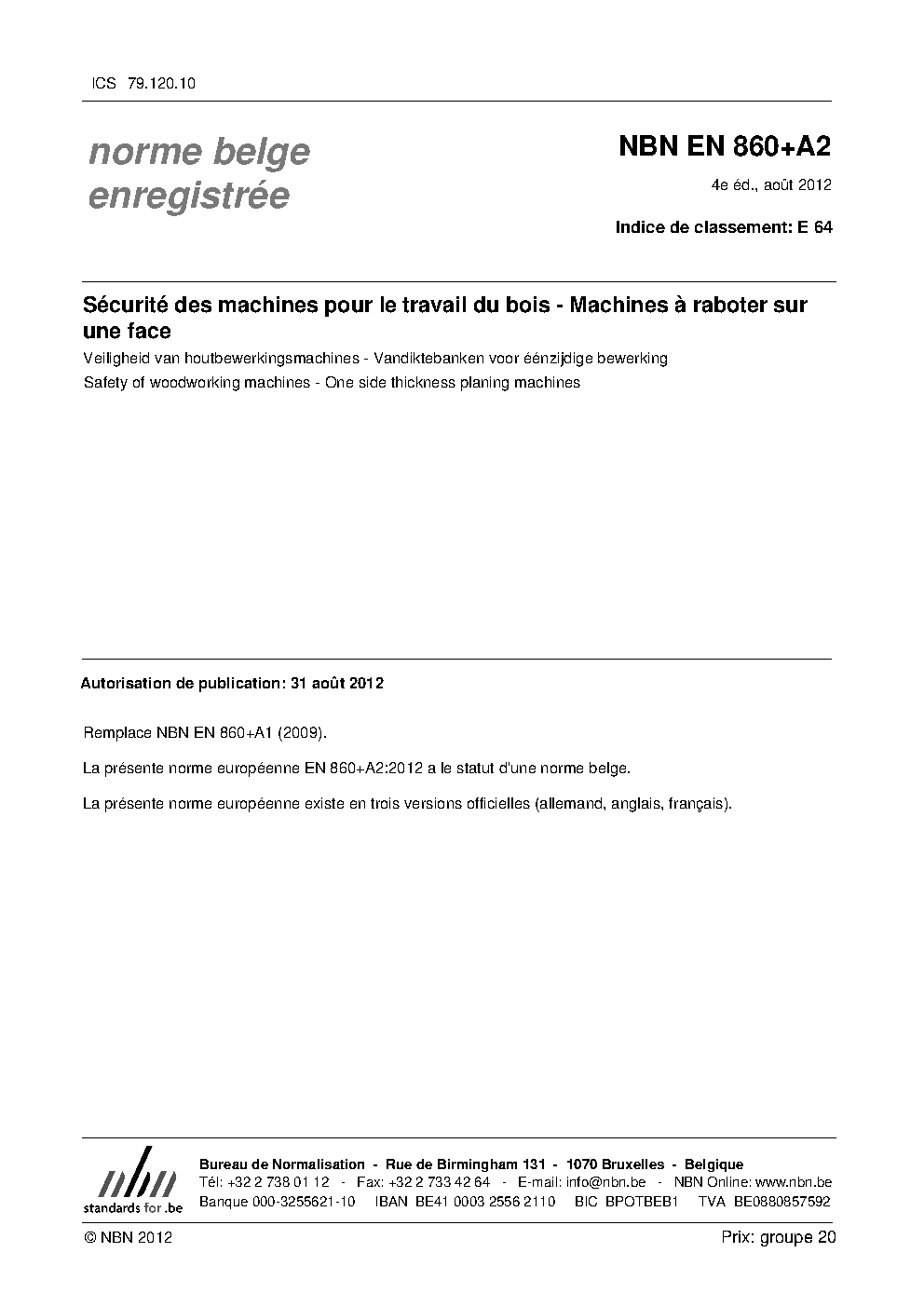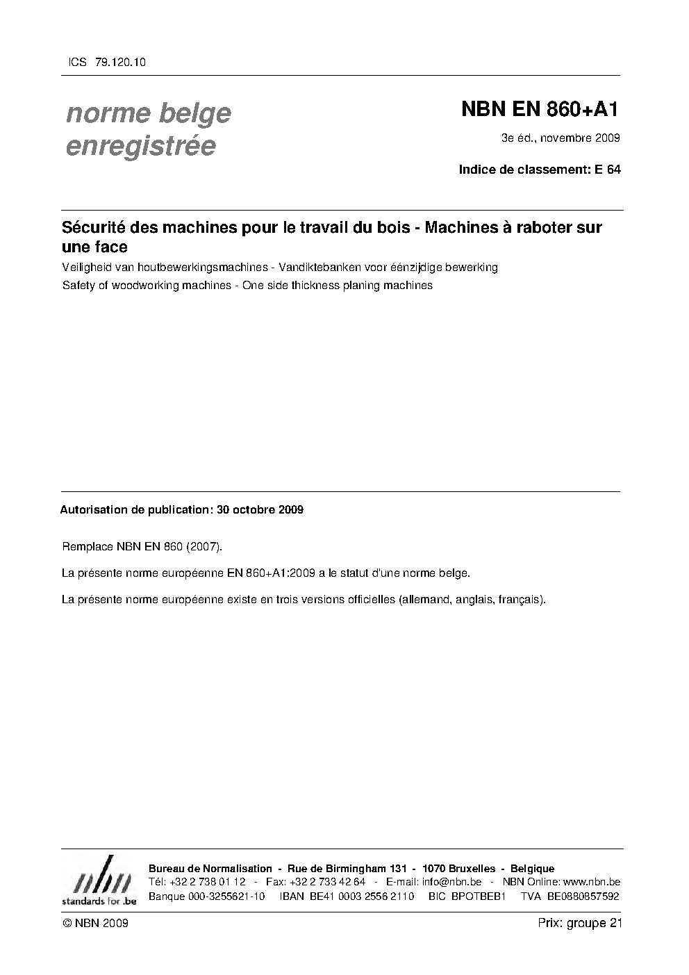 | Publisher | Bureau de Normalisation Belge (NBN) |