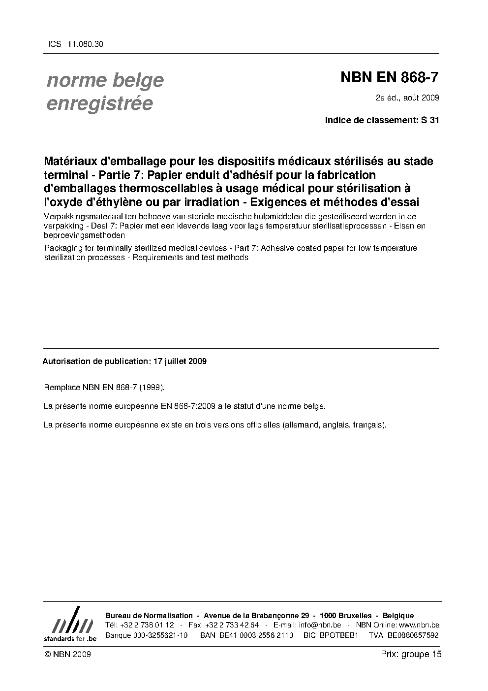 | Publisher | Bureau de Normalisation Belge (NBN) |