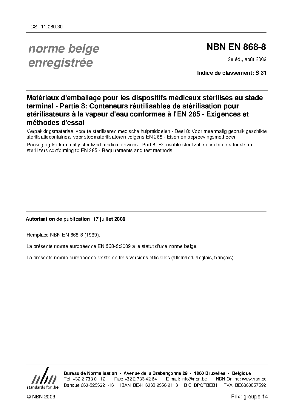 | Publisher | Bureau de Normalisation Belge (NBN) |