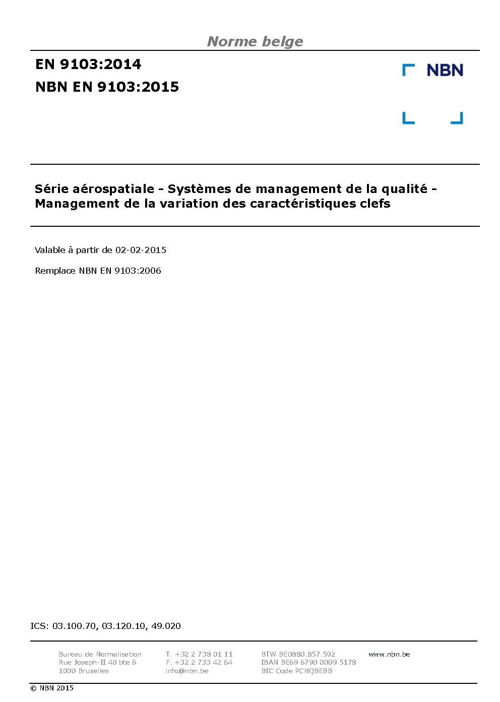 | Publisher | Bureau de Normalisation Belge (NBN) |