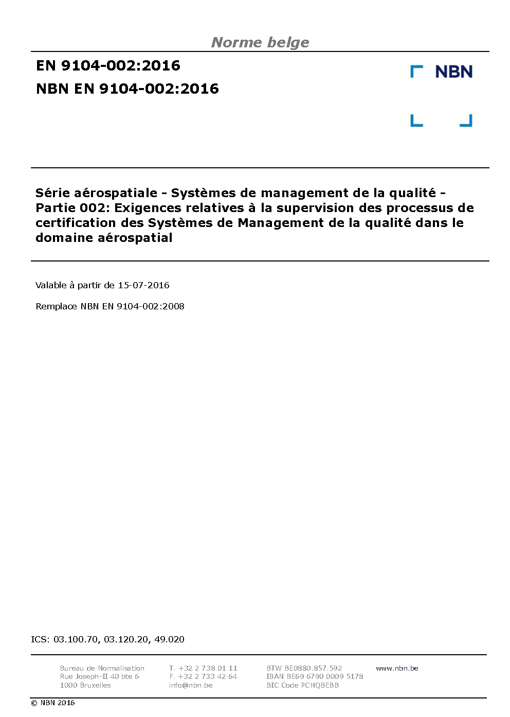 | Publisher | Bureau de Normalisation Belge (NBN) |
