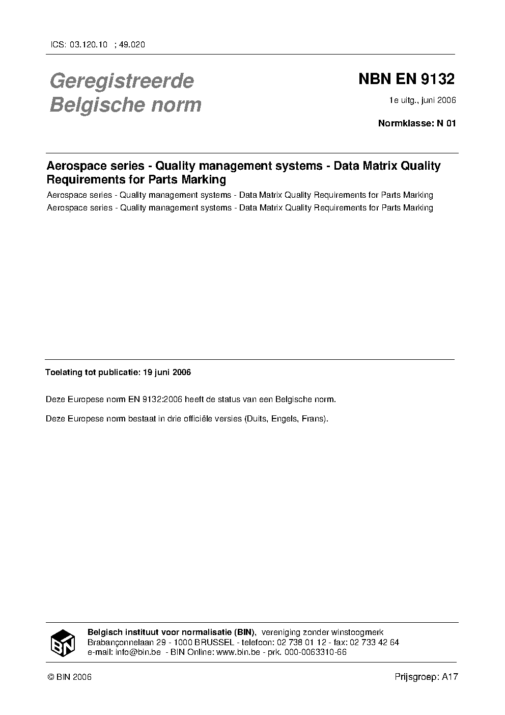 NBN EN 9132:2017