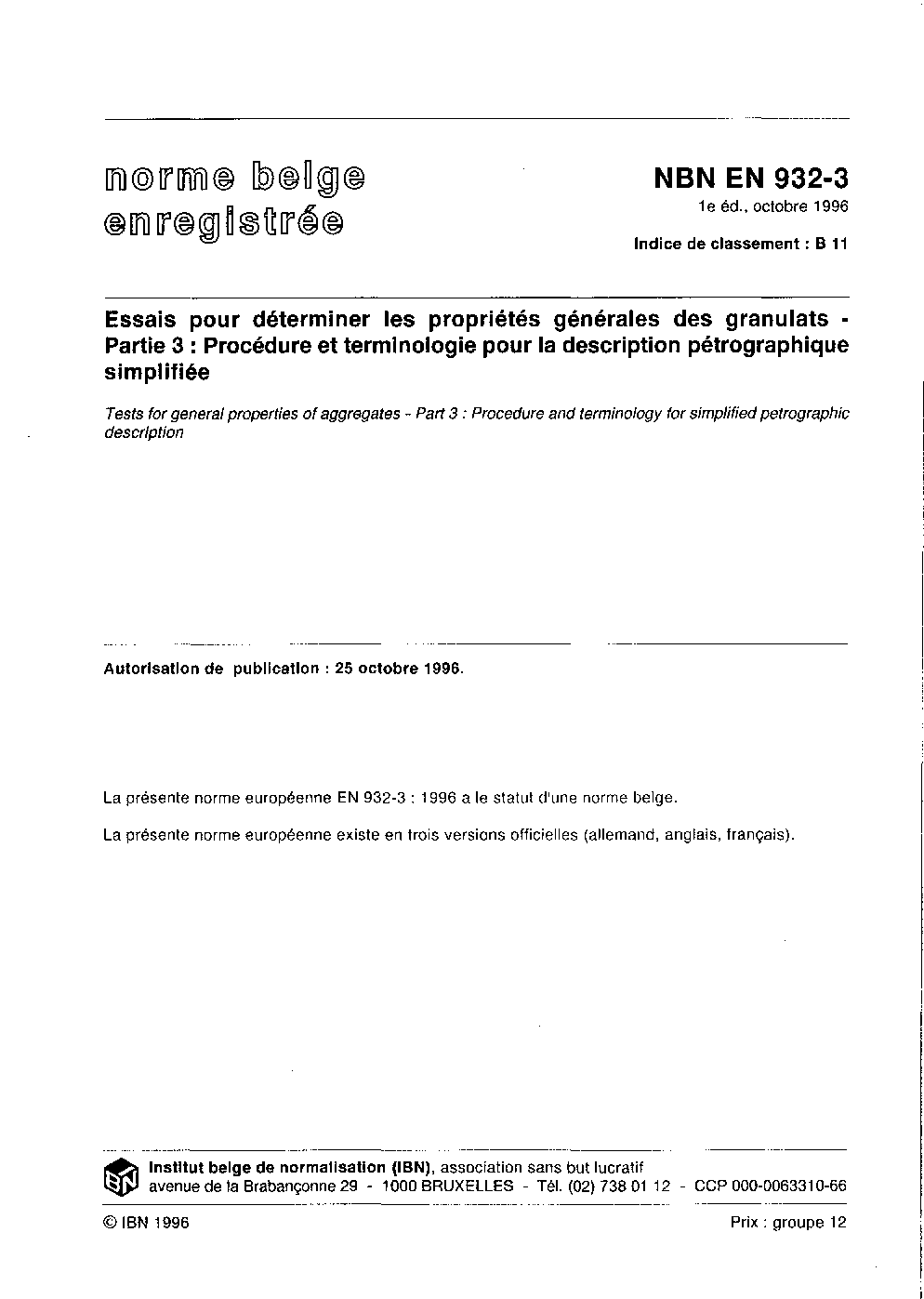 | Publisher | Bureau de Normalisation Belge (NBN) |