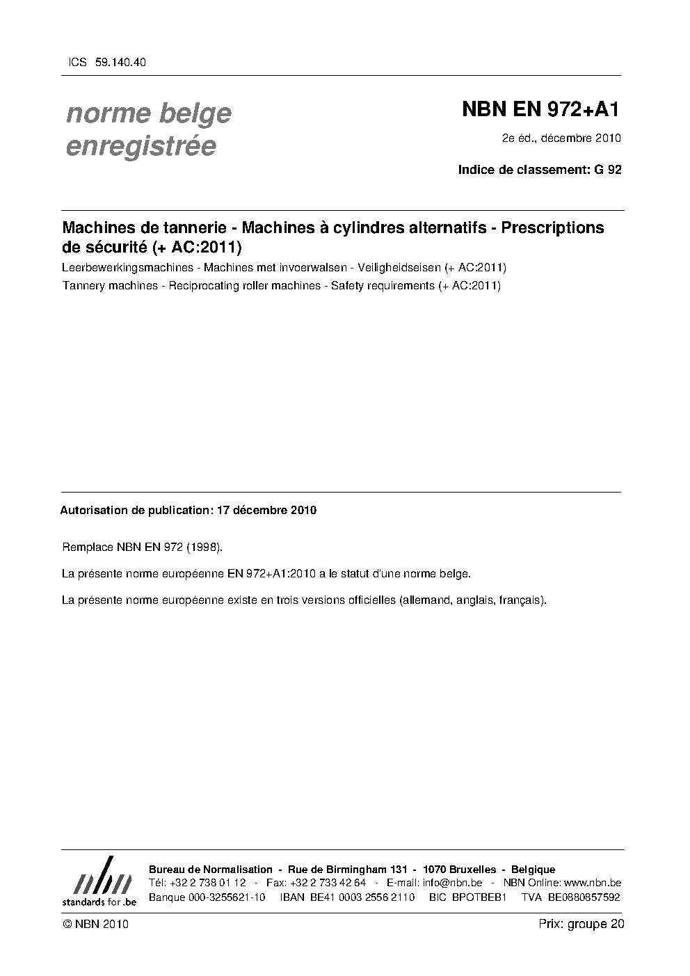 | Publisher | Bureau de Normalisation Belge (NBN) |