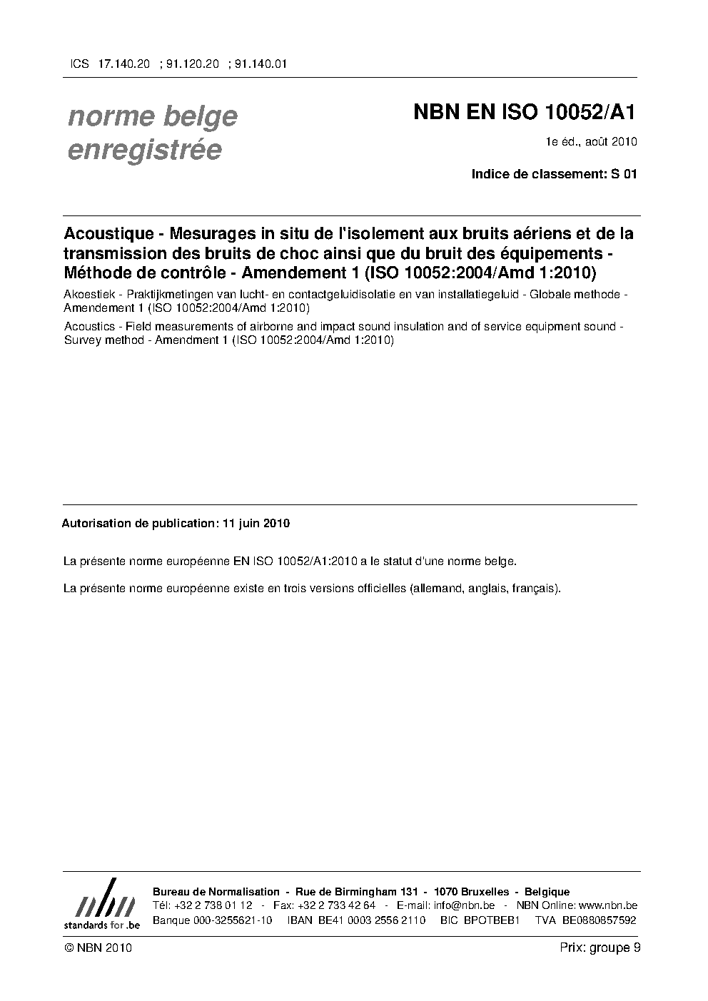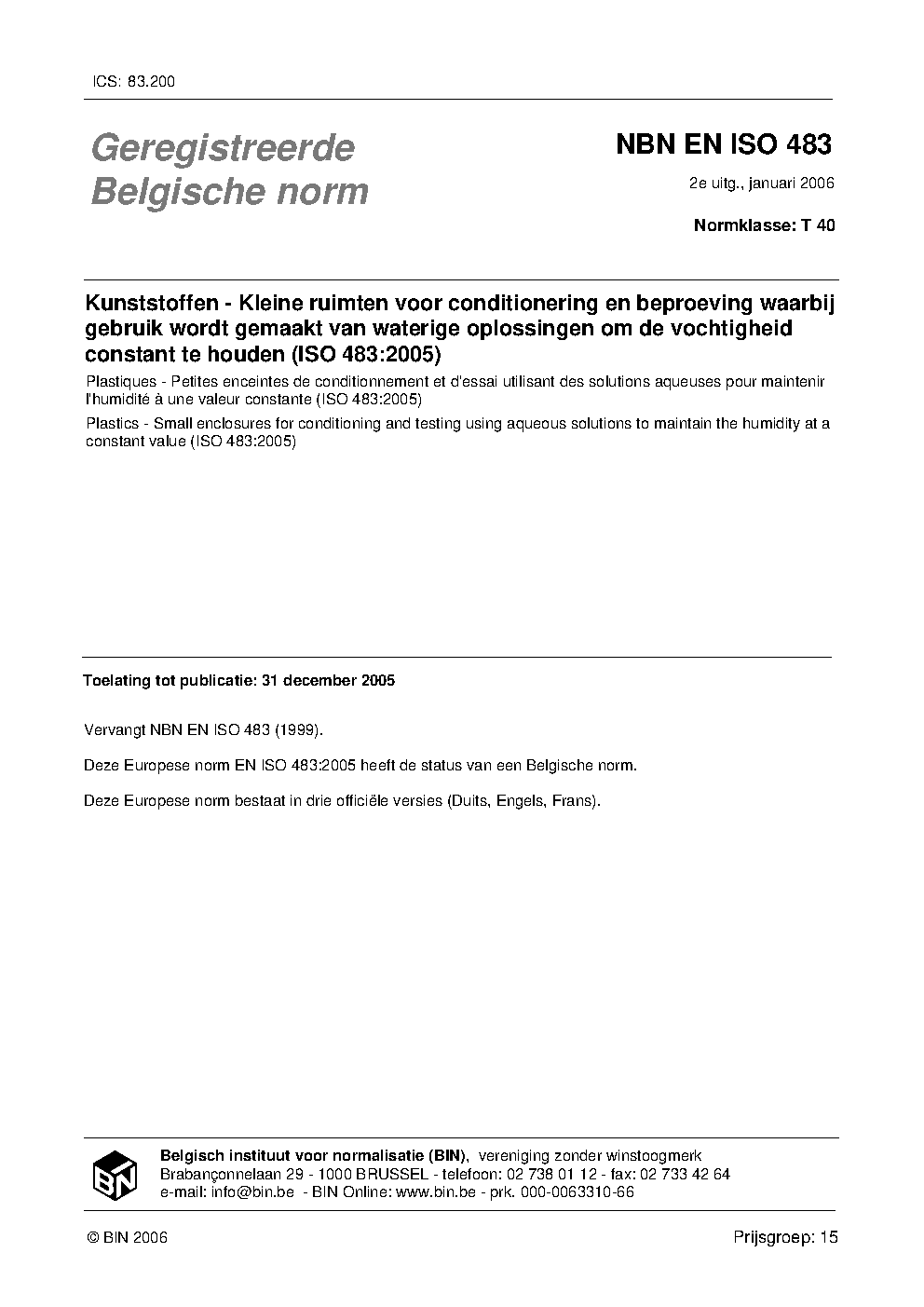 | Publisher | Bureau de Normalisation Belge (NBN) |