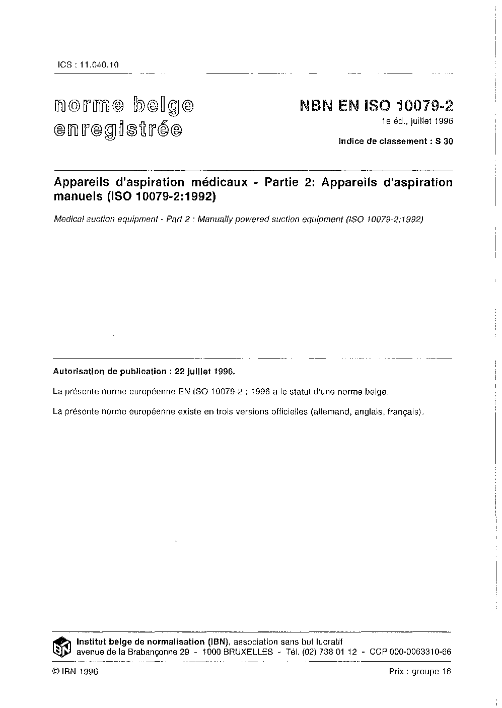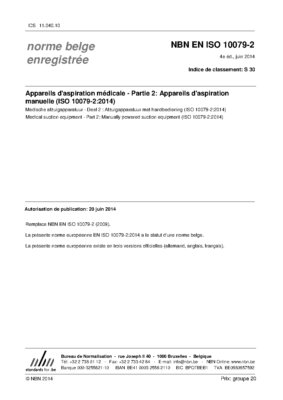 | Publisher | Bureau de Normalisation Belge (NBN) |