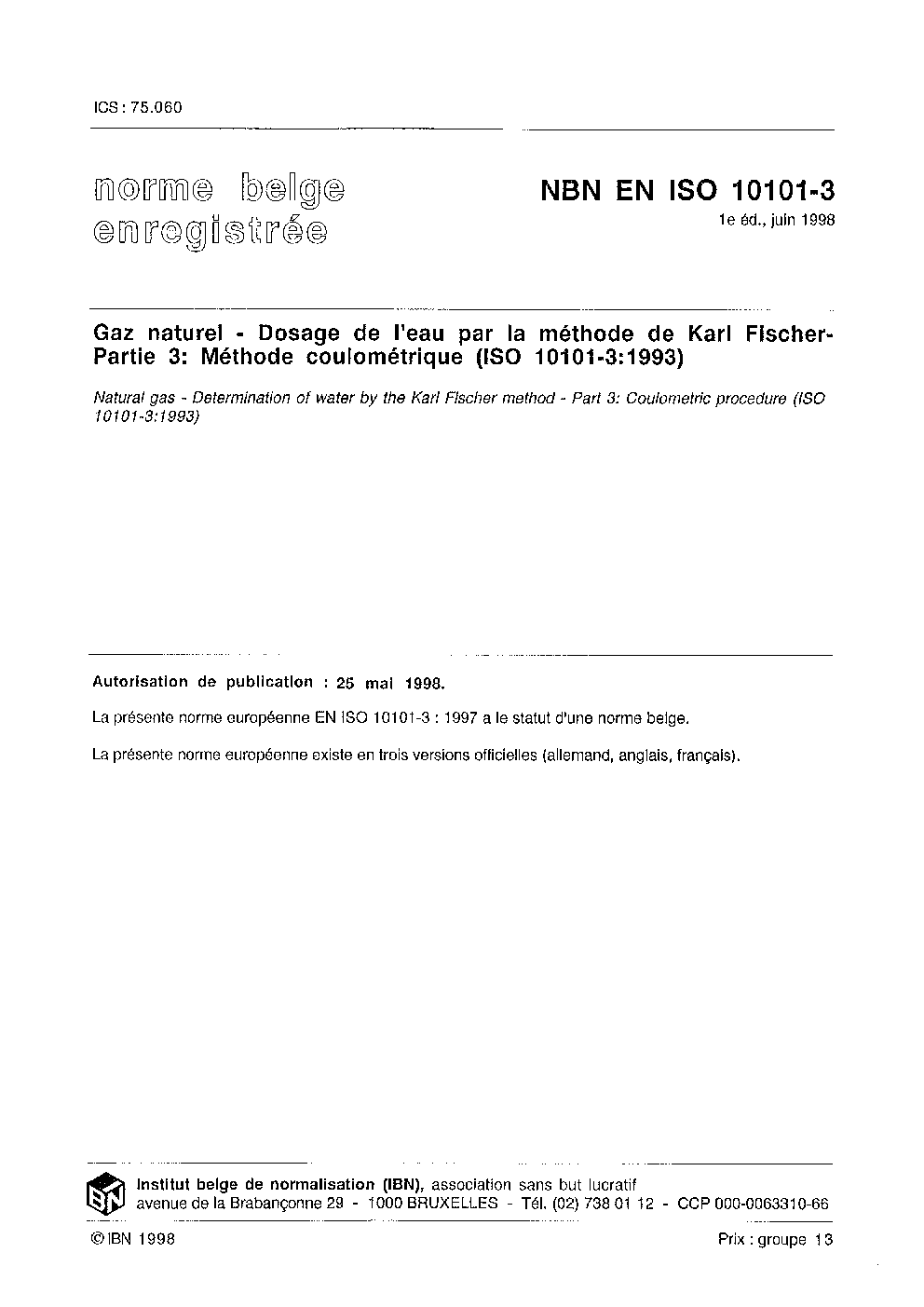 | Publisher | Bureau de Normalisation Belge (NBN) |