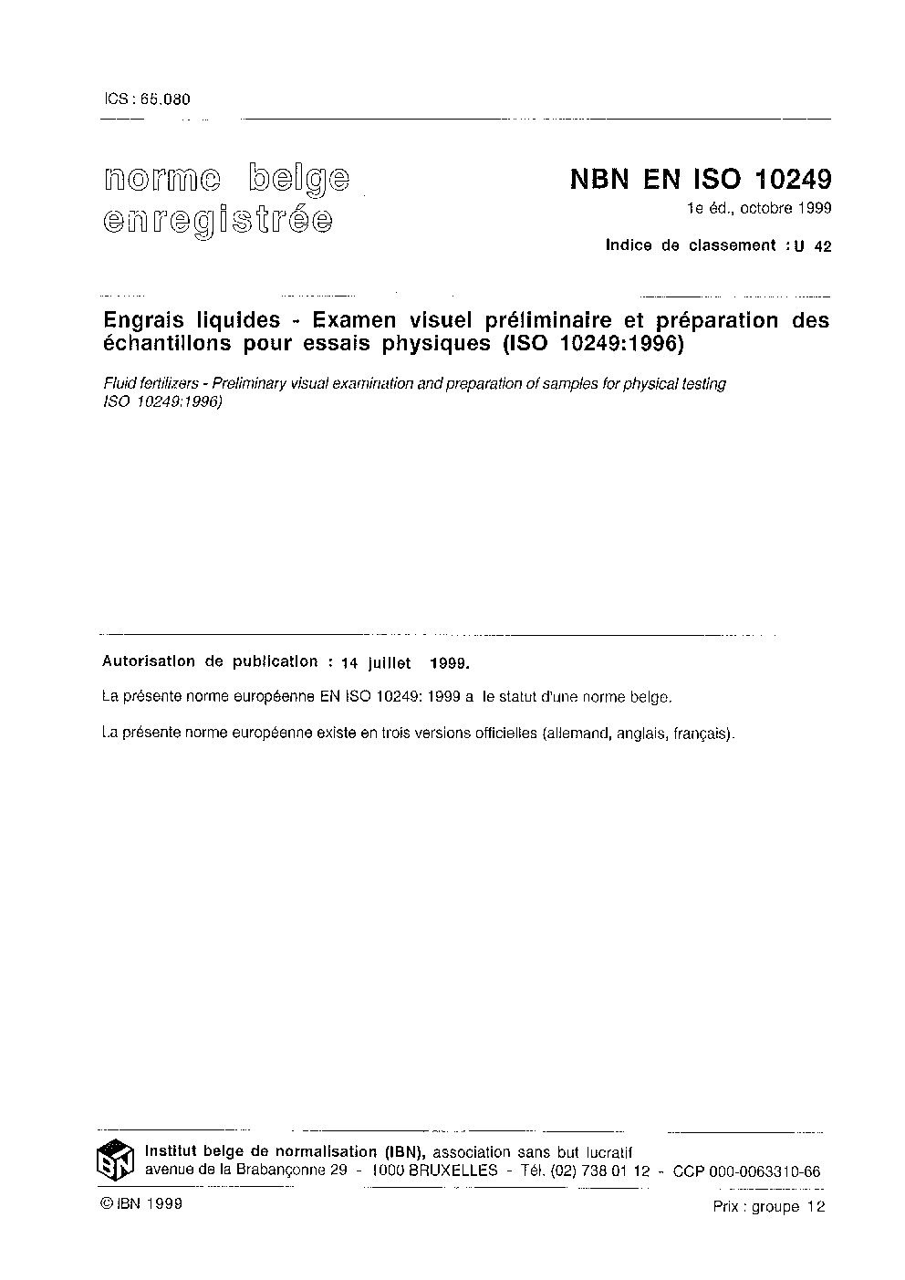 | Publisher | Bureau de Normalisation Belge (NBN) |