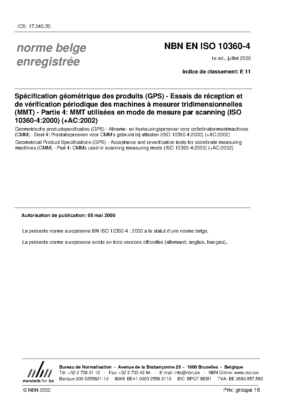 | Publisher | Bureau de Normalisation Belge (NBN) |
