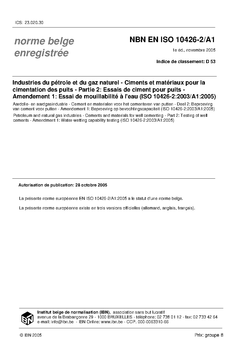 | Publisher | Bureau de Normalisation Belge (NBN) |