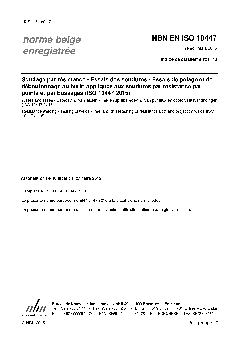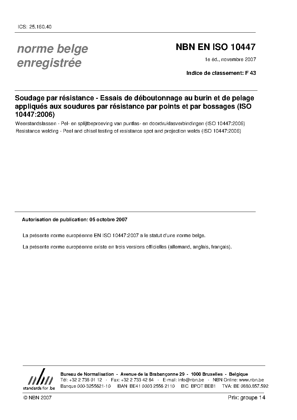 | Publisher | Bureau de Normalisation Belge (NBN) |