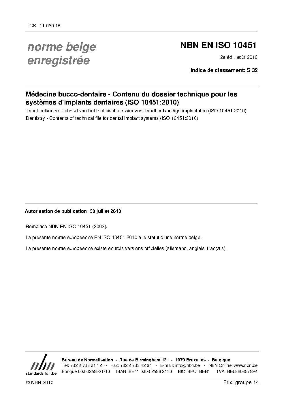 | Publisher | Bureau de Normalisation Belge (NBN) |