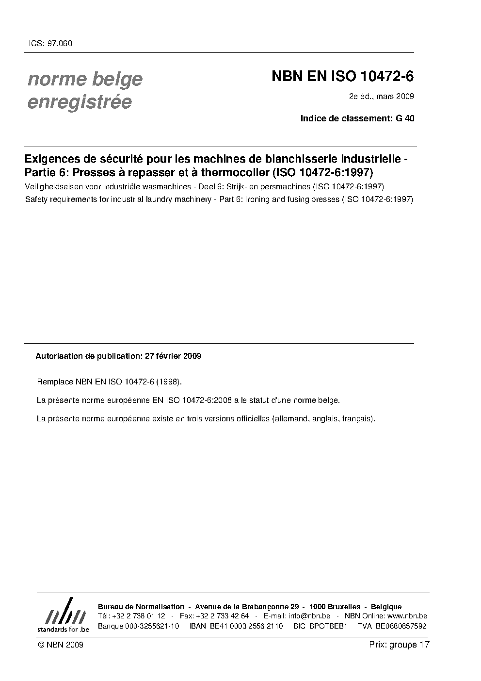| Publisher | Bureau de Normalisation Belge (NBN) |