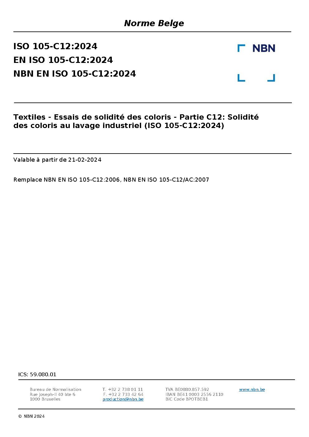 | Publisher | Bureau de Normalisation Belge (NBN) |