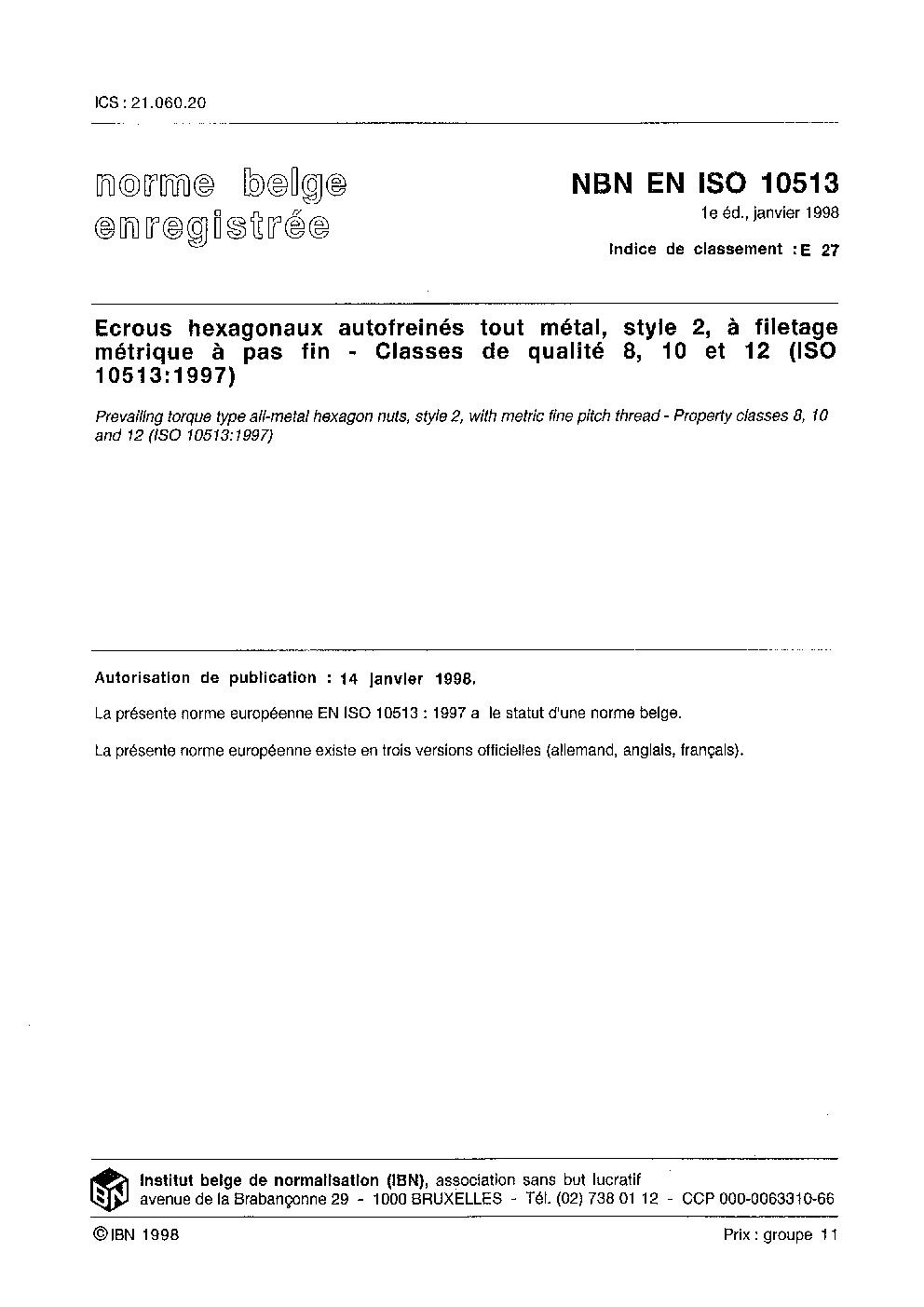 | Publisher | Bureau de Normalisation Belge (NBN) |