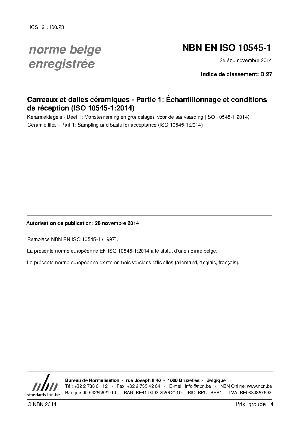 | Publisher | Bureau de Normalisation Belge (NBN) |