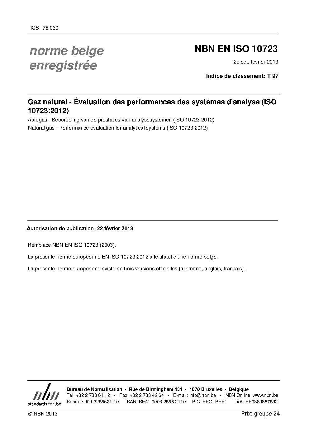 | Publisher | Bureau de Normalisation Belge (NBN) |