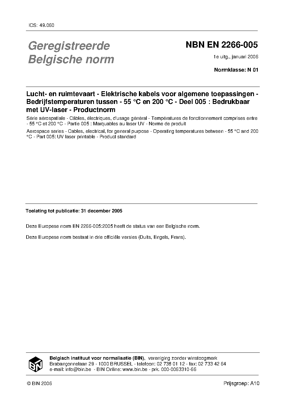 | Publisher | Bureau de Normalisation Belge (NBN) |