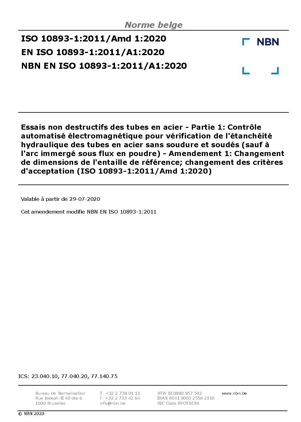 NBN EN ISO 10893-1:2011/A1:2020