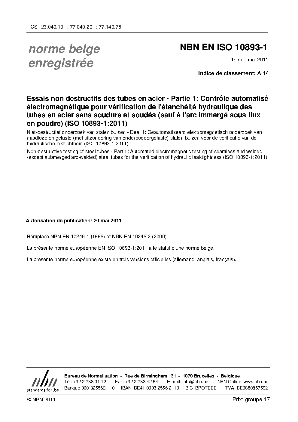 | Publisher | Bureau de Normalisation Belge (NBN) |