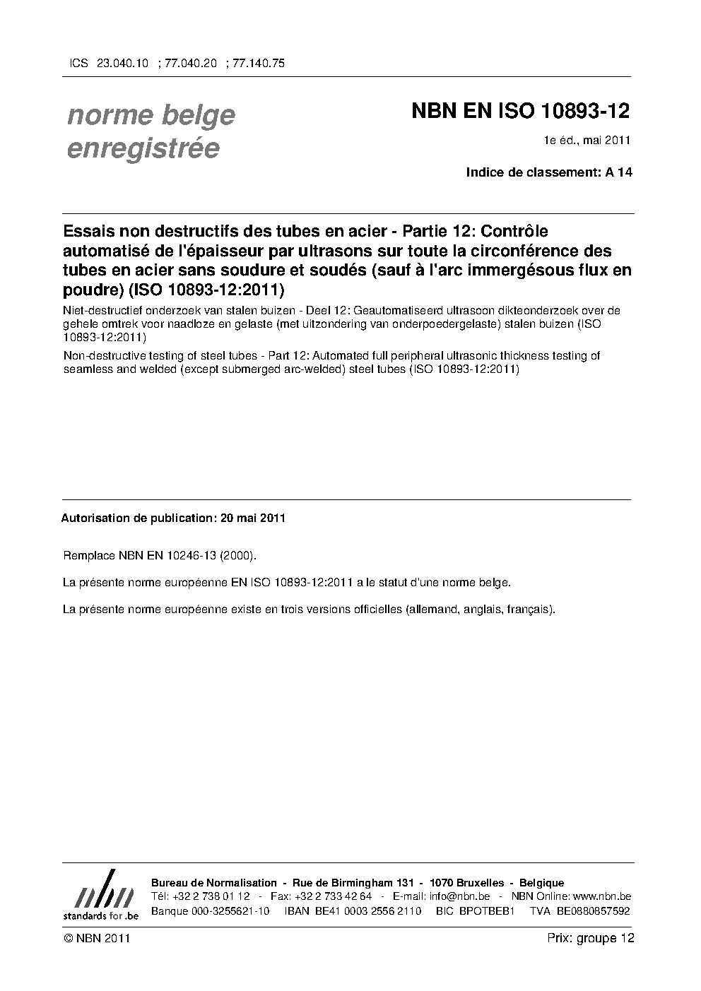 | Publisher | Bureau de Normalisation Belge (NBN) |
