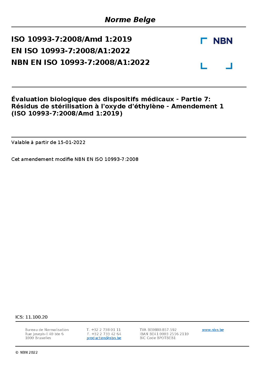 | Publisher | Bureau de Normalisation Belge (NBN) |