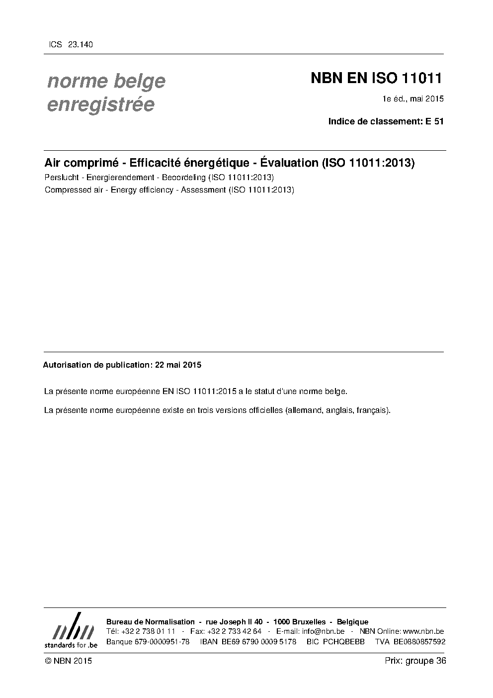 | Publisher | Bureau de Normalisation Belge (NBN) |
