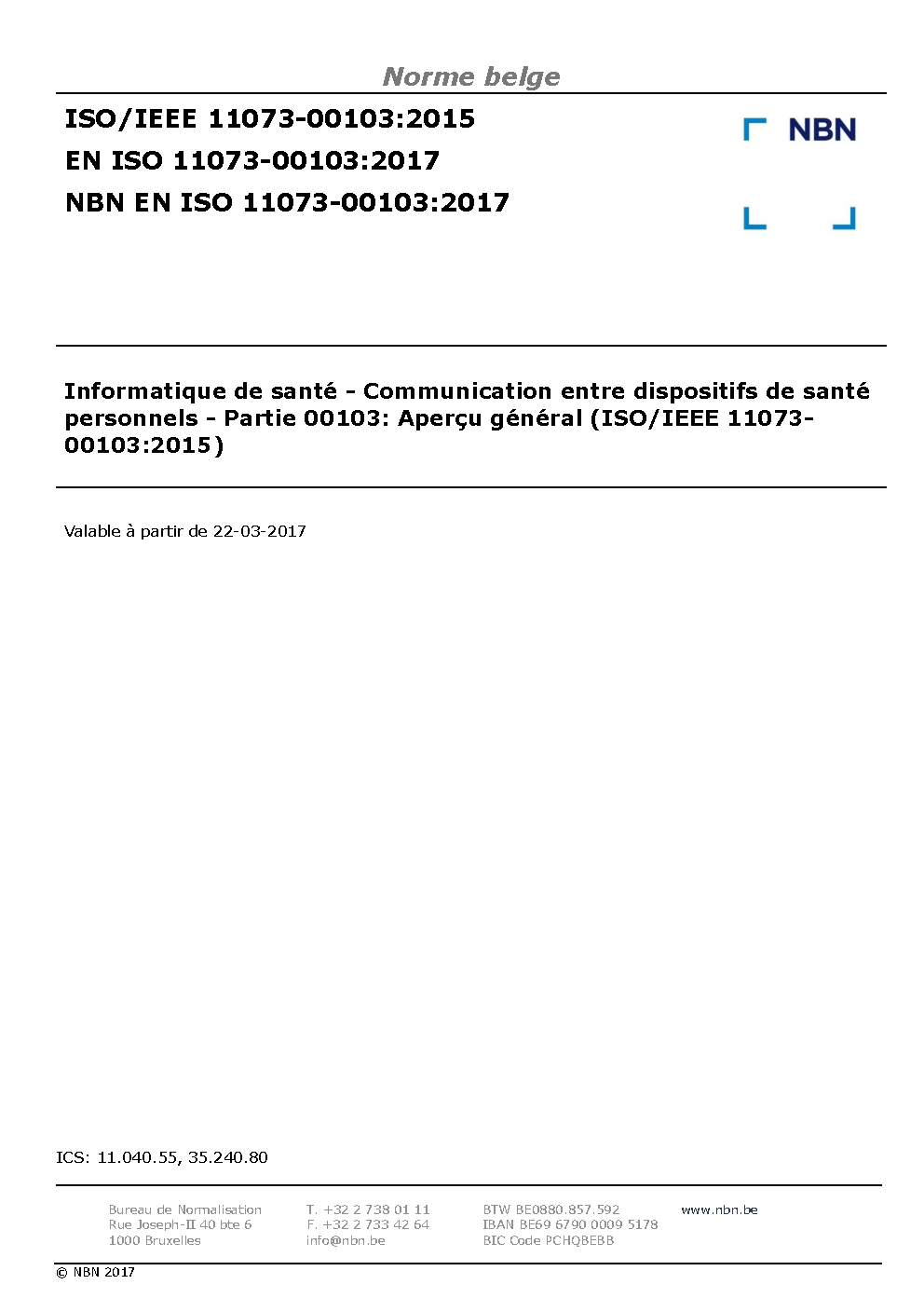 | Publisher | Bureau de Normalisation Belge (NBN) |